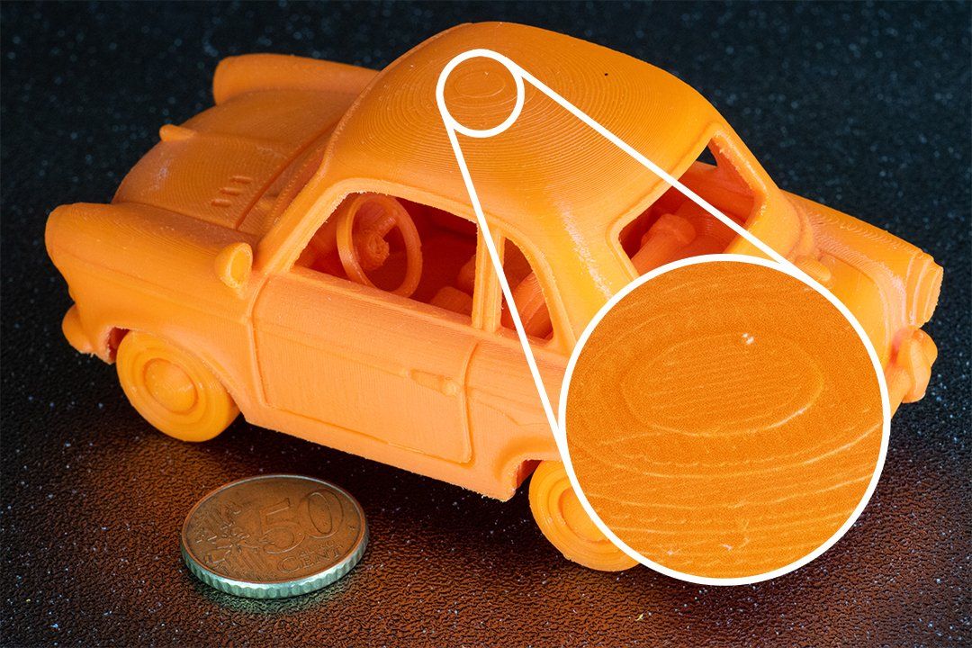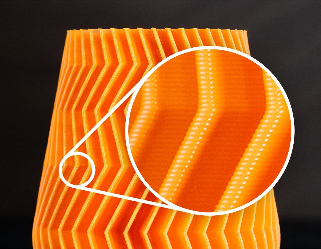De bekendste en meest gebruikte 3D print methode is FDM (Fused Deposition Modeling). Dit is momenteel de enige techniek die ik aanbied. Zoals te zien in de video hiernaast maken FDM printers gebruik van een smeltbaar plastic filament. Na verhitting in de printkop wordt laagje op laagje over elkaar geprint via een spuitmond (nozzle) om een object te vormen. Deze laagjes kunnen tot wel 0,08 millimeter dun zijn. Hoe goed je 3D printer ook is, zonder nabewerking van FDM 3D prints zijn deze laagjes altijd zichtbaar en voelbaar.